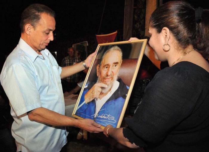 Durante la cita, el secretariado nacional de los CDR también entregó a Antonio un cuadro con la imagen de Fidel.