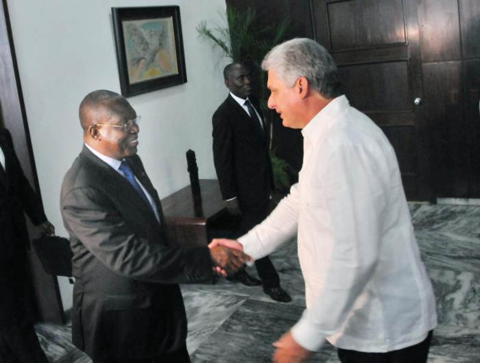 El Primer Vicepresidente de los Consejos de Estado y de Ministros de la República de Cuba, Miguel Díaz-Canel Bermúdez, recibió en la mañana de este lunes 18 de mayo en el Palacio de la Revolución, al Excmo. Sr. Manuel Domingos Vicente, Vicepresidente de la República de Angola, quien realiza una visita oficial a nuestro país.
