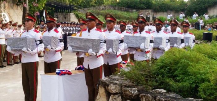 SANTA CLARA.— Con la colocación de ofrendas florales a nombre del líder de la Revolución, Fidel Castro; del Primer Secretario del Comité Central del Partido y Presidente de los Consejos de Estado y de Ministros, General de Ejército Raúl Castro; además de las de los familiares, tuvo lugar este viernes en el Mausoleo a los combatientes del Frente Las Villas, la ceremonia familiar, con honores militares, de inhumación de los restos de los luchadores caídos durante la guerra de liberación o fallecidos después del triunfo de la Revolución.