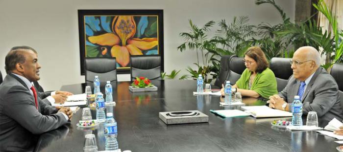 Ricardo Cabrisas Ruiz, Vicepresidente del Consejo de Ministros, recibió en la mañana de este miércoles al Excmo. Sr. Stanley M. Palm, Ministro de Desarrollo Económico de Curazao, quien se encuentra en nuestro país al frente de una nutrida delegación empresarial que participa en la Feria Internacional de La Habana.