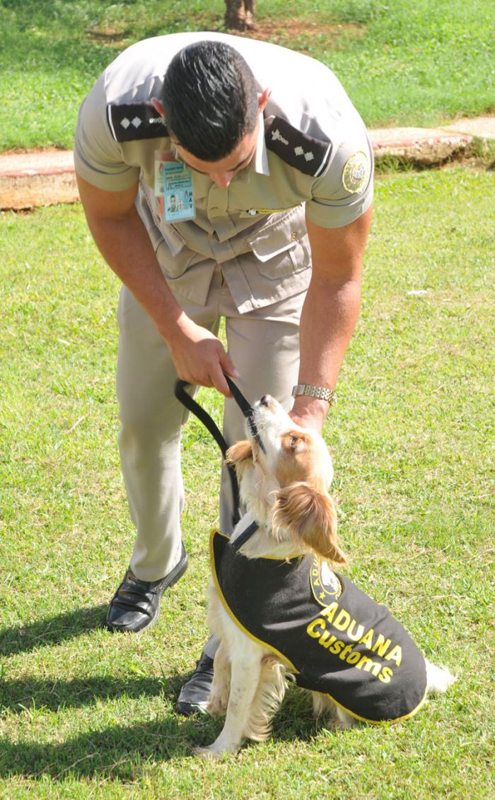 —La Aduana no utiliza ese tipo de perros por su tamaño. Además, transmiten agresividad, impresionan y nosotros nos desempeñamos en salones cerrados con viajeros de todas las edades, desde niños hasta ancianos. Los perros con los que laboramos son más dóciles, más afectivos, más propensos al intercambio con las personas y, por tanto, nos facilitan a nosotros el detectar algún indicio, creando las menores molestias posibles. Necesitamos la confianza del pasajero y la del can.