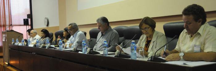 Miguel Díaz-Canel Bermúdez, miembro del Buró Político del Partido y primer vicepresidente de los Consejos de Estado y de Ministros, participa en los análisis de la comisión de Educación, Cultura, Ciencia, Tecnología y Medio ambiente, la cual, acompañada de miembros de las comisiones Agroalimentaria y de Asuntos económicos, discute sobre el impacto de la aplicación de la ciencia, la tecnología y la innovación en la producción de alimentos.