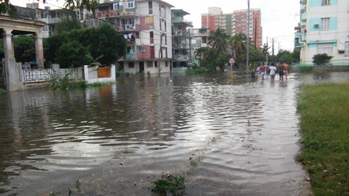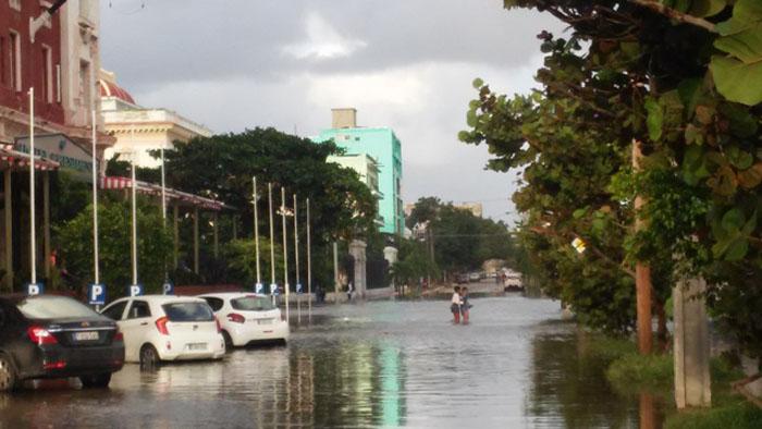 Ya entrada la tarde, alrededor de las 4:00 PM o incluso antes, el batir de las olas en la costa propasó los muros del Malecón y el mar avanzó hasta la calle Línea.
