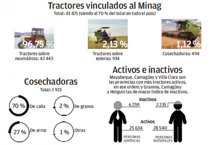 El esfuerzo de muchos es lo que le permite seguir rodando a buena parte de ellos, cuando la gran mayoría cuenta con más de tres décadas en sus rodamientos. Esa es la realidad de más del 95 % de los tractores registrados en el país, cuyo parque total ascendía en el 2015 a 62 668 unidades y de los cuales el 70 % estaba vinculado al Ministerio de la Agricultura (Minag).