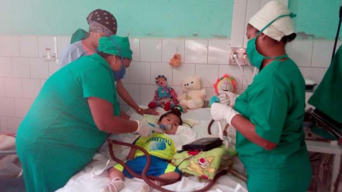 En la sala de terapia del hospital infantil General Luis Ángel Milanés, de la ciudad de Bayamo, el pequeño recibe atención esmerada de todo un equipo médico que ama su trabajo.