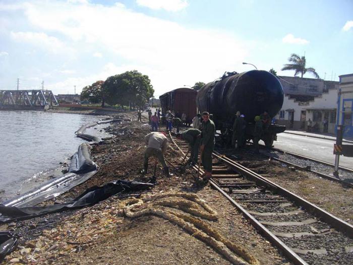 El incidente ferroviario tuvo lugar en la barriada de Versalles, a escasos metros de la desembocadura del río Yumurí, cuando al parecer la ruptura de un raíl provocó el vuelco de un convoy que trasladaba crudo y fertilizantes desde la Empresa Comercializadora de Combustible Matanzas.