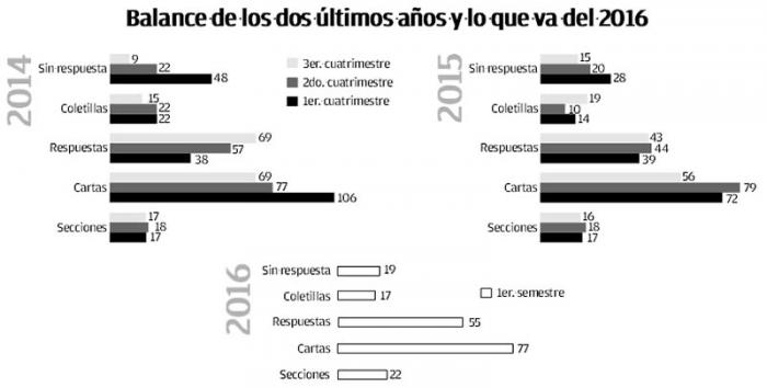 Desde que publicamos el primero de estos balances, el 9 de mayo del 2014, la cantidad de respuestas a las cartas de la población ha ido creciendo. En ese resumen inicial, 48 cartas estaban sin respuestas, mientras que solo 14 de aquel periodo fueron contestadas, a las que se sumaron 22 que respondieron a misivas del 2013.