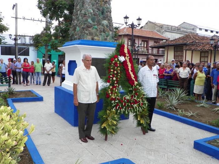 Tras un minuto de silencio ante la tarja que rememora el hecho, compañeros de lucha de quien Fidel designara Jefe Nacional de Acción del Movimiento Revolucionario 26 de Julio, acompañados por pioneros, colocaron una ofrenda floral, y la estudiante de secundaria básica de la Ciudad Escolar 26 de Julio (otrora cuartel Moncada), Aimee Falcón, evocó en poemas su legado.