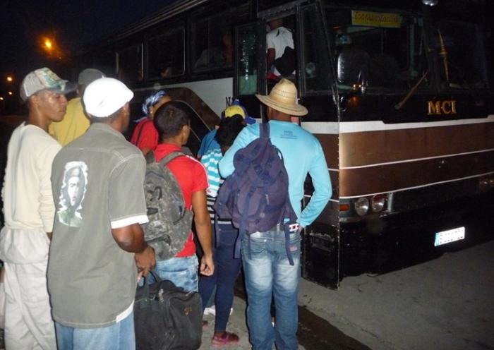 GUANTÁNAMO.—Alrededor de 80 mujeres y hombres de este municipio cabecera, convocados por los CDR y la UJC, partieron en la mañana de ayer rumbo a las comunidades de Cajobabo y Boca de Jauco para apoyar la recuperación de viviendas dañadas por el huracán Matthew.