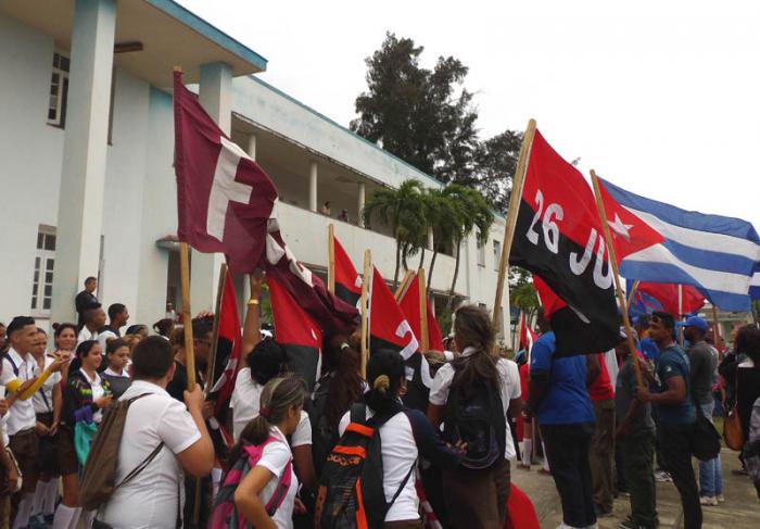 Al filo del mediodía arribó el destacamento al Instituto Politécnico de Economía Cándido González Morales, para junto al estudiantado local rendir homenaje a uno de los expedicionarios del yate Granma, quien fuera asesinado el 8 de diciembre de 1956 en Boca del Toro, Niquero, por soldados de la dictadura de Batista.