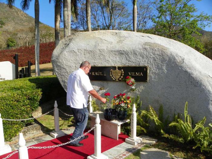 Al tributo asumido por alumnos de la Escuela Militar Camilo Cienfuegos, de Santiago de Cuba, seleccionados por sus destacados resultados integrales, siguió el homenaje especial dedicado a la heroína de la sierra y el llano, Vilma Espín Guillois, ante la roca monumento que en tan sagrado lugar atesora sus cenizas.