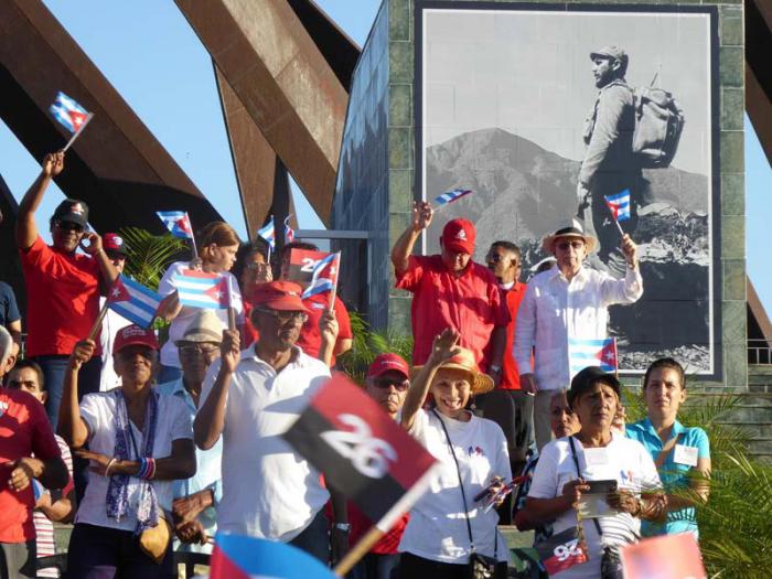 Justo con los primeros rayos de sol asomando por el lomerío y tras las emotivas palabras de la secretaria general de la CTC en la provincia, María de los Ángeles Cordero Tamayo, iniciaron el paso en simbólica unidad los fogueados combatientes de la Revolución, y el gigantesco bloque de los jóvenes estudiantes y trabajadores.