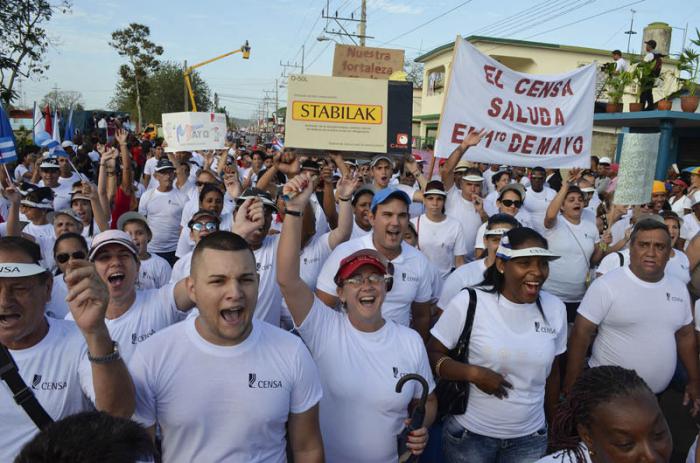 Bloques de los 16 sindicatos representados en la provincia, más dos integrados por jóvenes y campesinos, respectivamente, desfilaron frente a la tribuna en la capital San José de las Lajas.