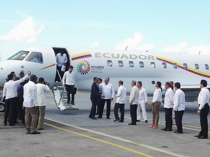El presidente de Ecuador, Rafael Correa, llegó en la tarde de hoy a La Habana procedente de Santiago de Cuba, en la segunda parada de su visita oficial a nuestro país.
