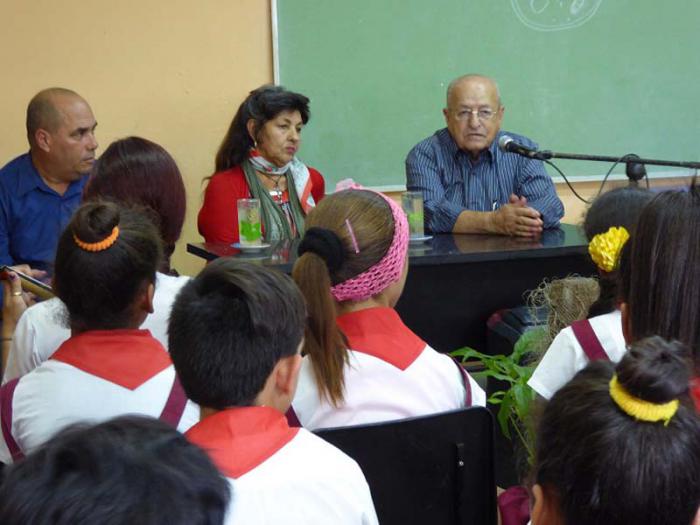 LAS TUNAS.–Mostrar a las nuevas generaciones el valor de la historia que les ha precedido y revivir momentos trascendentales en el camino hacia la independencia, fueron los objetivos del intercambio que sostuvo Ramiro Sánchez Domínguez, combatiente de las acciones del 26 de Julio, con estudiantes y profesores de la Escuela Profesional de Arte El Cucalambé de este territorio.