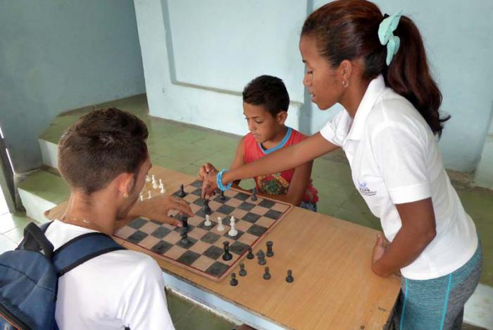 La «profe», dijo refiriéndose a la muchacha, es muy activa en la organización de actividades recreativas, sobre todo de programas A Jugar, competencias de fútbol, voleibol, pelota a mano y juegos de mesa.