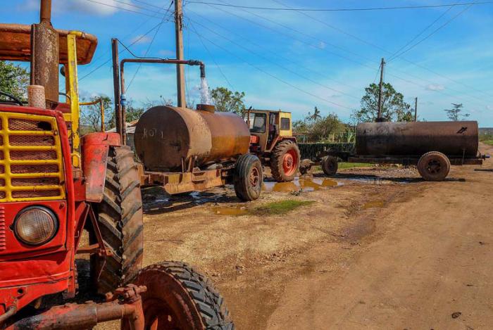 «Aquí la mayoría de las casas tienen pozos, pero los que viven en Piloto Nuevo, que es más pa’ arriba, porque es el pueblo nuevo, lo que tienen son cisternas y tanques. Pero tú verás ahora cuando llegue la pipa, que yo me subo arriba del tractor. Para que no haya lío. Porque cuando se está así, en estas situaciones, la gente se desespera. Pero ellos me conocen y cuando hablo con ellos y les explico las cosas, entienden».