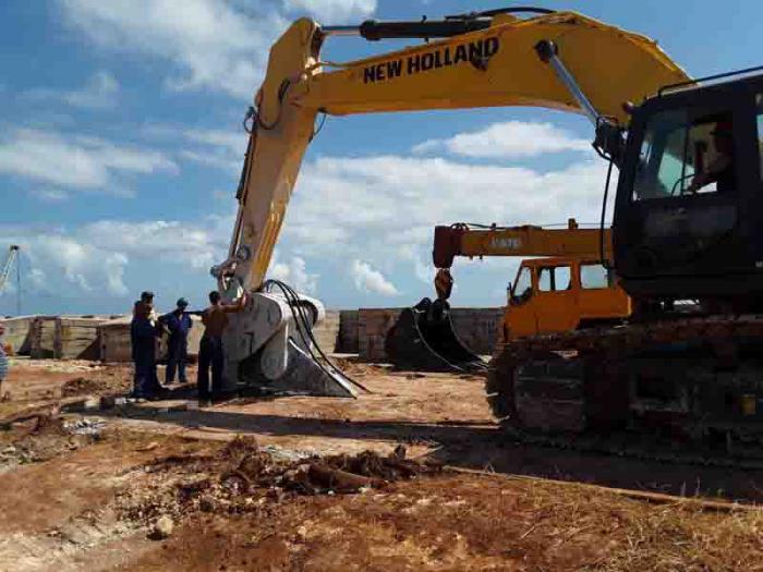 –Mayormente participan el Micons Varadero y el de Matanzas, así como Obras Marítimas y la Empresa de Mantenimiento a Centrales Termoeléctricas. No han faltado brazos. Todos se han alzado como un solo hombre. Llama la atención los potentes retromartillos para las grandes demoliciones. Entre otros equipos contamos con buldóceres, cargadores de gomas y grúas desde 100 hasta 30 toneladas de capacidad de izaje.