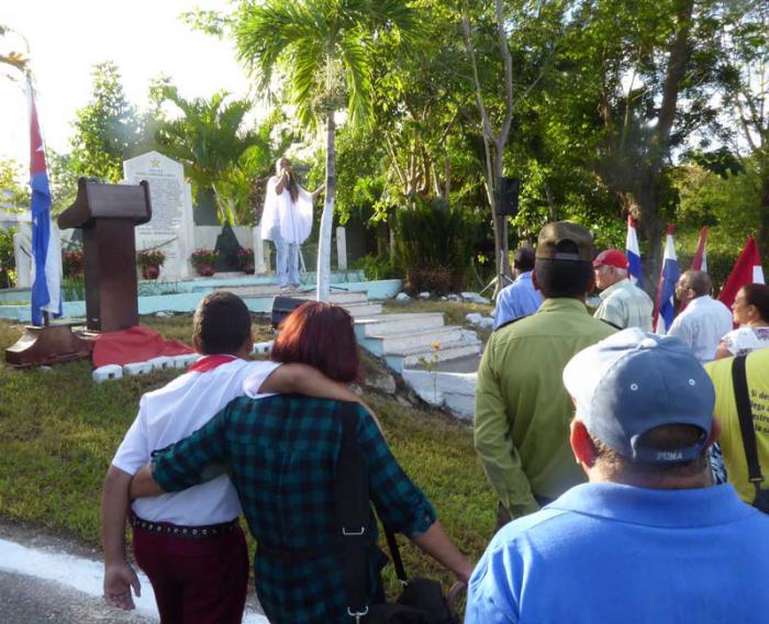 Ante al obelisco erigido a su memoria frente a la casa natal, donde reside aun uno de sus hermanos, los lugareños rindieron tributo al combatiente con canciones, poemas y flores, en un acto presidido por el miembro del Comité Central del Partido, Federico Hernández, primer secretario de la organización política en la provincia de Granma.