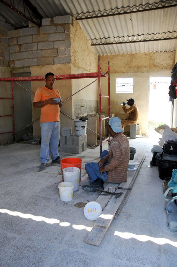 «Estamos avanzando a buen ritmo, a pesar de que hemos tenido algunas limitaciones por las inclemencias del tiempo y algunos recursos que han fallado y que ya hemos ido resolviendo. Las viviendas de aquí constan de dos habitaciones, baño, cocina, comedor, sala, portal y terraza. Una de estas tiene tres cuartos porque es para un núcleo más grande. Ya se les terminó las instalaciones hidráulica y sanitaria, falta la instalación eléctrica, que se va a hacer en estos días.