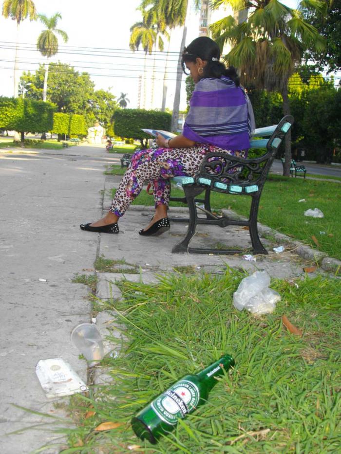 Hay quienes van en una guagua, se comen un caramelo y arrojan la envoltura por la ventanilla. Otros han hecho de los jardines que hay tras las barandas de Coppelia –también utilizadas como barandas de la cola del P16, P4, P9, etcétera– un depósito oficial de colillas de cigarros, sobrecitos de sorbetos sin sorbetos y cucuruchos de maní vacíos, o quizá con el último grano atorado en la parte más fina del cono.
