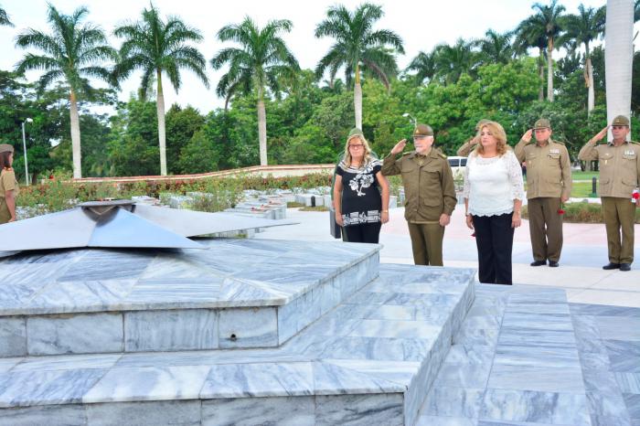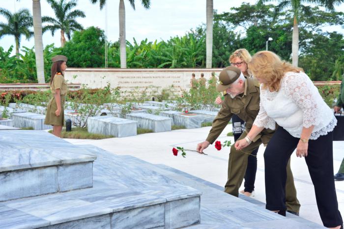 En solemne ceremonia efectuada en el mausoleo del Frente, el Comandante de la Revolución Ramiro Valdés y los dirigentes que lo acompañaban colocaron flores en el nicho reservado para el Señor de la Vanguardia y el de otros combatientes de la importante fuerza guerrillera, y estudiantes de la Escuela Militar Camilo Cienfuegos depositaron, junto a la llama eterna, una ofrenda floral a nombre del pueblo de Cuba.