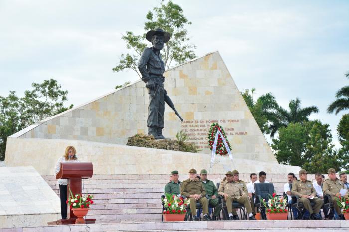 «En héroes como Camilo y en su lealtad a Fidel nos inspiramos», expresó la primera secretaria del Partido en Sancti Spíritus, quien también alabó en su discurso el empeño puesto por toda la provincia durante el último año de trabajo para borrar las secuelas del huracán Irma en Yaguajay, unos de los municipios más afectados en el país con el meteoro de septiembre de 2017.