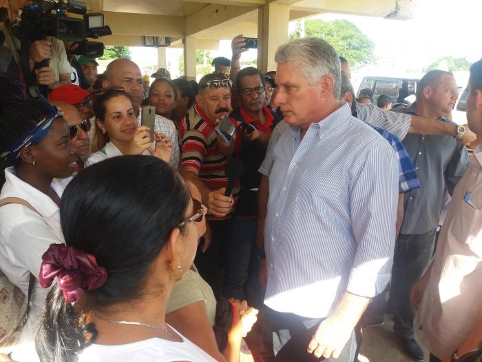 Miguel Díaz-Canel Bermúdez, presidente de los Consejos de Estado y de Ministros de Cuba, recorrió este viernes centros vinculados con la vitalidad de la economía y reconoció la respuesta de directivos y trabajadores en la recuperación del territorio, tras afectaciones dejadas por el paso cercano del evento meteorológico Michael.