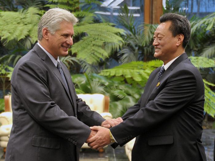 Miguel Díaz-Canel Bermúdez recibió al Excmo. Sr. Ma Chol Su, embajador de la República Popular Democrática de CoreaFoto: Estudios Revolución