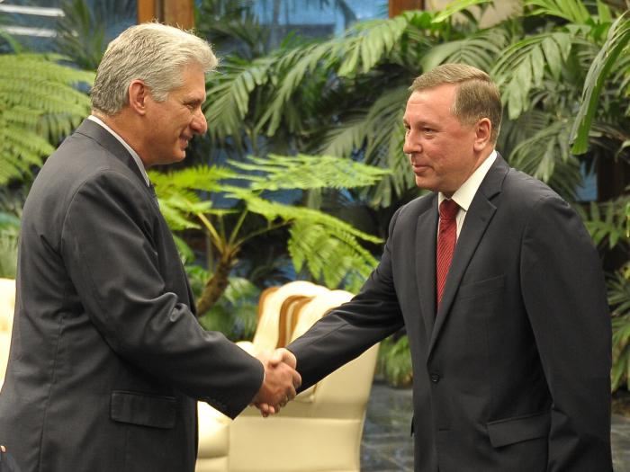 Miguel Díaz-Canel Bermúdez recibió al Excmo. Sr. Andrey A. Guskov, embajador de la Federación de RusiaFoto: Estudios Revolución