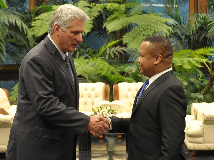 Miguel Díaz-Canel Bermúdez recibió al Excmo. Sr. Felix Nicholas Mfula, embajador de la República de ZambiaFoto: Estudios Revolución