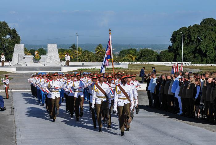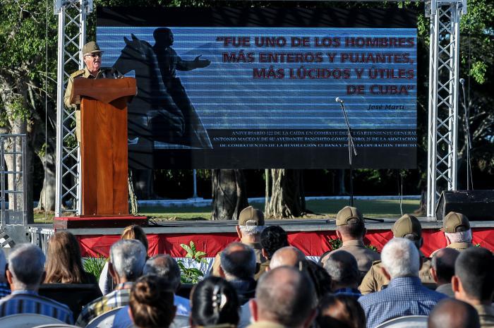 122 años después, Cuba no los ha dejado morir, aseguró el General de División José A. Carrillo Gómez, presidente de la Dirección Nacional de la Asociación de Combatientes de la Revolución, durante un acto político y ceremonia militar, celebrado este viernes en el Mausoleo El Cacahual, La Habana, donde hoy descansan los restos del Titán de Bronce, y su joven ayudante.