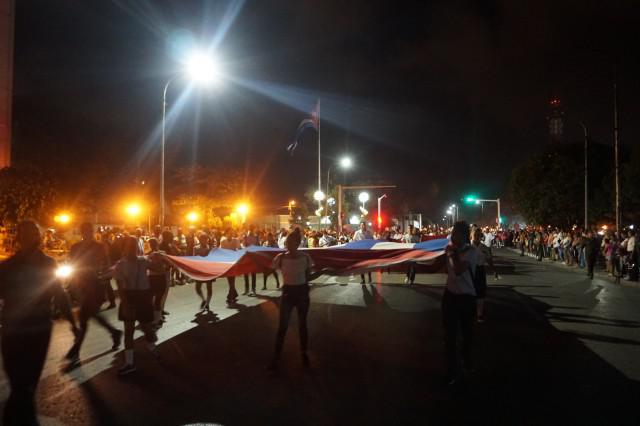 Encabezado por banderas cubanas, la dirección del Partido y el gobierno, y dirigentes de la UJC y organizaciones estudiantiles en la provincia, el desfile partió desde la intersección del Paseo de Martí y la Avenida de los Libertadores, para culminar ante la llama eterna del sendero de los padres fundadores de la nación, Céspedes, Mariana y Fidel.