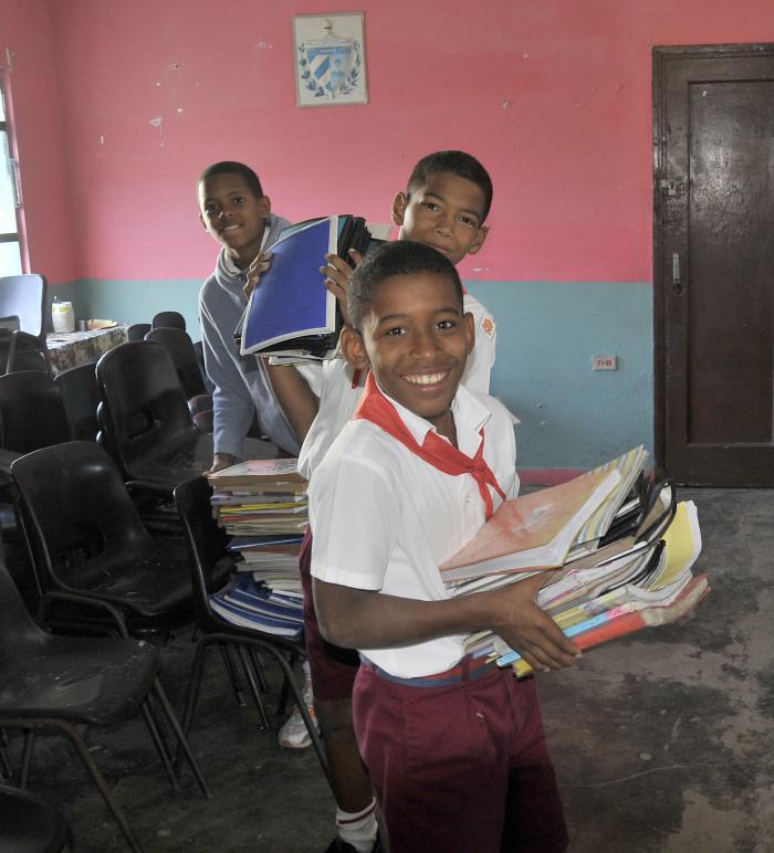 «Se llevó todos los techos, mira. Perdimos los televisores y se mojaron los libros de los niños. Fue muy duro», dice, como quien pretende esconder la zozobra, y falla. «La recuperación la empezamos el mismo domingo por la noche. Tratamos de salvar los materiales gastables de nuestros niños, o sea, las libretas y cuadernos, que son imprescindibles para que no se interrumpa el proceso docente.