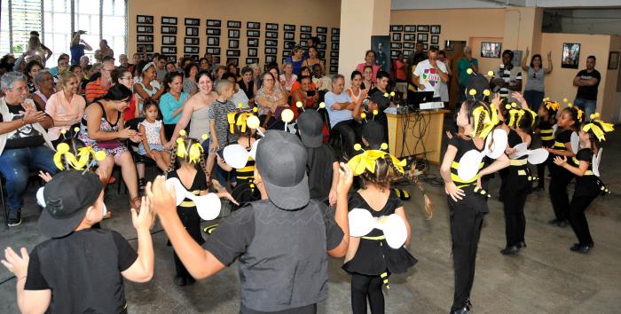 Otro momento divertido resultó la interpretación de A bailar el toca toca, de Adalberto Álvarez, un tema que puso en movimiento a los participantes, que cantaron además, junto a las abejitas, el que identifica el programa televisivo La Colmena TV, conocido por todos los cubanos.