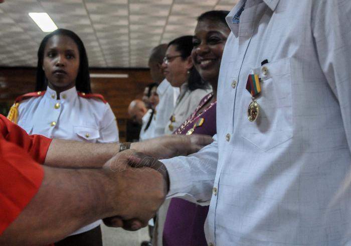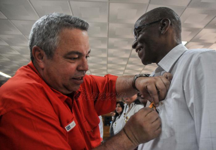 Un total de 17 trabajadores y líderes obreros fueron condecorados, indistintamente, con la Medalla Jesús Menéndez, el Sello 80 Aniversario de la Central de Trabajadores de Cuba (CTC) y el certificado por los diez y 15 años de ejercicio en la dirección sindical.