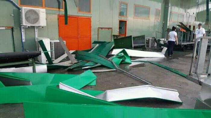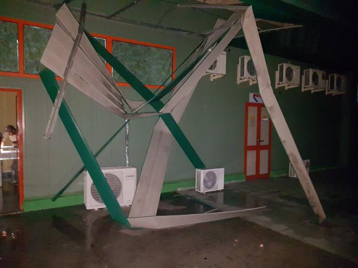 Las fuertes lluvias, los vientos y la espesa granizada, provocaron daños en los techos y uno de los salones del Aeropuerto Internacional Abel Santamaría; además de afectar decenas de viviendas y el tendido eléctrico en varios circuitos de la urbe, según pudo constatar este reportero durante un breve recorrido por las zonas afectadas.
