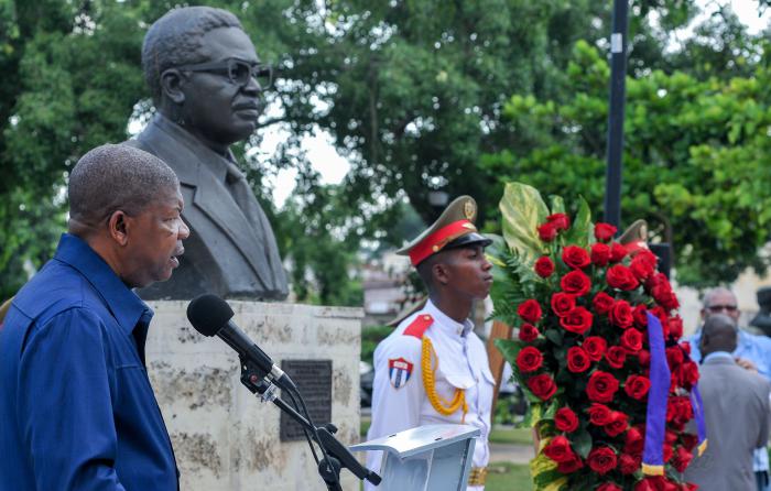Como parte de su visita oficial a la Isla, el Presidente angoleño rindió tributo en la mañana de este lunes, en el Parque de los Próceres Africanos, en la capital cubana, al padre fundador y primer mandatario de su país, Agostinho Neto, y a los combatientes internacionalistas cubanos caídos en tierras africanas.