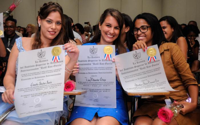 Héctor Amed Velázquez es uno de los 39 estudiantes graduados este jueves del Instituto de Relaciones Internacionales «Raúl Roa» (ISRI), de la capital cubana. Fue, además, el encargado de alzar su voz en nombre de sus compañeros, jóvenes de gran talento y entrega que dan así su primer paso en la preparación para ser quienes defiendan, protagonicen y lleven la diplomacia de la Revolución cubana a todos los rincones del planeta.