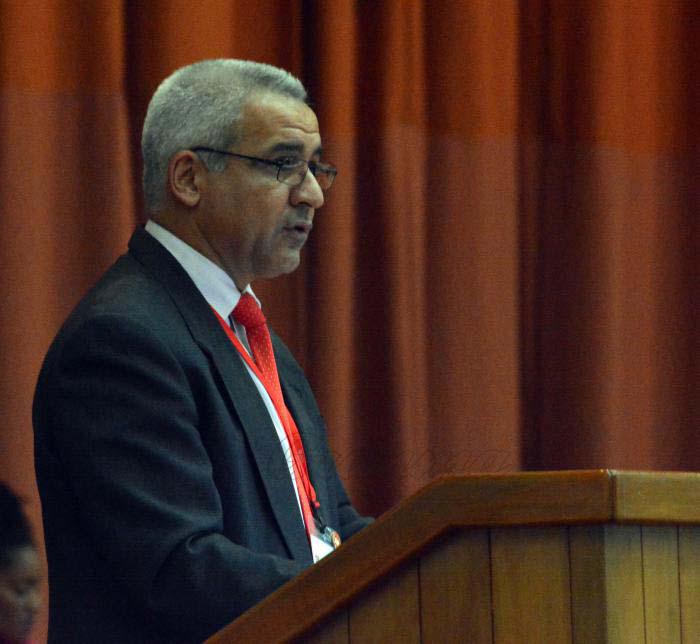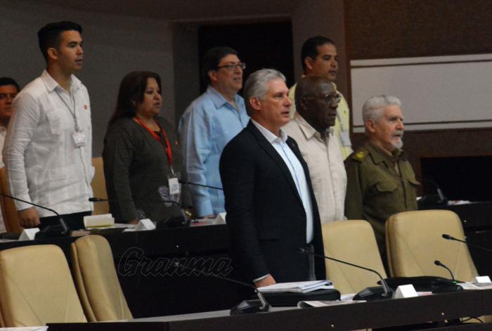 Destacó que es motivo de honor y regocijo contar en esta sesión plenaria con la presencia del General de Ejército y Primer Secretario del Comité Central del Partido Comunista de Cuba, Raúl Castro Ruz; José Ramón Machado Ventura, segundo secretario del Comité Central del PCC, y Miguel Díaz-Canel Bermúdez, presidente de los Consejos de Estado y de Ministros.