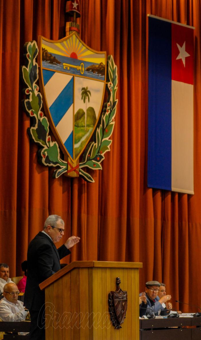 Esteban Lazo pronuncia las palabras de apertura recordando la historia de la Asamblea cubana desde Guáimaro hasta hoy. Recuerda que no ha habido descanso en pos de buscar mejorar el proyecto socialista y revolucionario cubano.