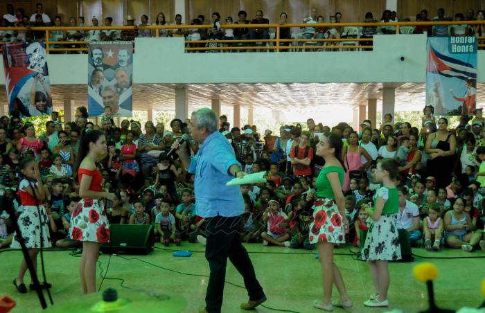 Con la atención de todos los niños del lugar reunidos en el salón principal, Rosa María Ramírez Montero, presidenta nacional de la Organización de Pioneros José Martí, rememoró las palabras de nuestro eterno Fidel, cuando en el año 1974, en la declaración oficial del tercer domingo de julio como día de los niños, expresó: «Hay que pensar en el futuro, y el futuro son ustedes. En ustedes se enmarca el futuro de nuestra patria».