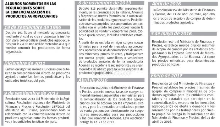 «Estamos en un proceso de dignificación que incluye mejorar la imagen de la red de mercados agropecuarios estatales para que los productos tengan buena presencia y permanencia en las tarimas, y además cuenten con una exposición atractiva. Trabajamos para incrementar los productos preelaborados y empacados que proporcionan mayores facilidades para el consumo», señaló López Barrios, y ejemplificó con mercados de este tipo en Villa Clara, Las Tunas, Camagüey, Holguín y Santiago de Cuba, con buena acogida por la población. Se prepara la edificación, hoy en reparación, del mercado Cuatro Caminos, en la capital, para tales propósitos.