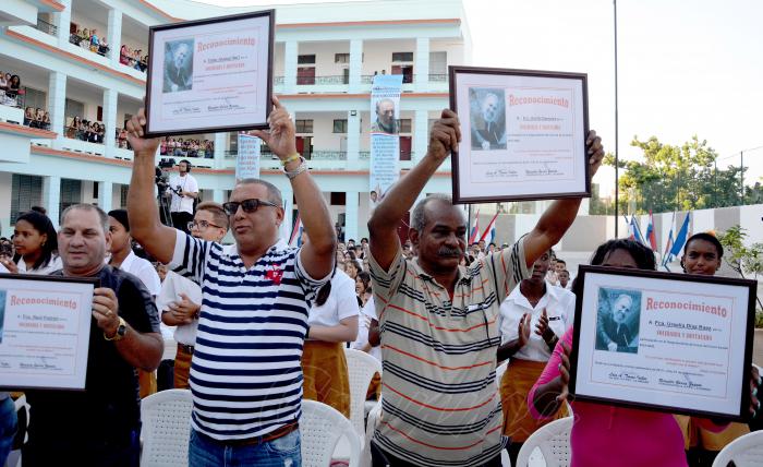 En la actividad se entregaron reconocimientos a organismos que han contribuido con el aseguramiento para el inicio del curso escolar. También se confirió la bandera de Proeza Laboral a varios colectivos de trabajadores que realizaron en tiempo récord actividades y tareas vinculadas con la etapa lectiva, en especial a tres costureras destacadas en la confección de uniformes: Ivón Zaldívar Fernández, Alina Acosta Ayes y María de la Caridad Domínguez Esponda.