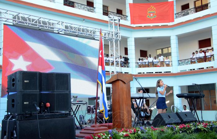 La interpretación de la Bayamesa por una estudiante de preuniversitario, la música del grupo de cuerdas Acordo, más el sello de la agrupación Moncada, con Gallo de pelea y Mi historia crecerá, amenizaron la fiesta, extensiva a las más de 10 700 instituciones educacionales del país que igualmente iniciaron el curso y recibieron una cifra superior a 1 700 000 estudiantes.