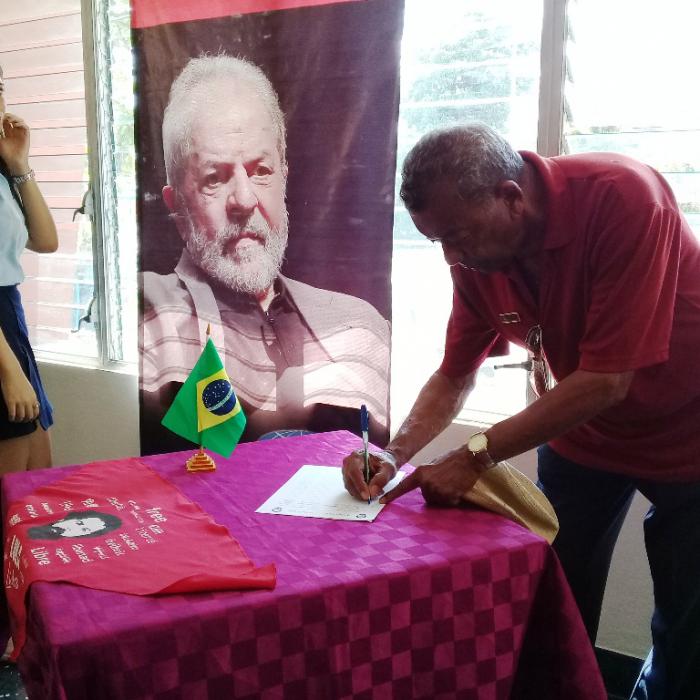 La recolección de firmas, comenzó en esta provincia por la Industria Nacional Productora de Utensilios Domésticos (INPUD Primero de Mayo), donde cientos de trabajadores se sumaron al reclamo universal de libertad para el expresidente de la nación sudamericana, quien durante los más de 500 días que lleva preso ha mantenido muy en alto su frente y la verdad que lo acompaña.