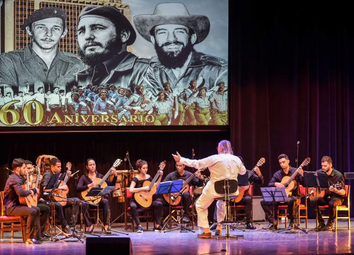 Constituye para todo nuestro pueblo un momento de especial simbolismo conmemorar en la tarde de hoy tres acontecimientos vinculados con la supervivencia y consolidación de la Revolución Cubana y de la historia de héroes y mártires de la Patria que no escatimaron esfuerzo alguno, incluso hasta la vida, por defender un proyecto social en beneficio “de los humildes, por los humildes y para los humildes”. Nos referimos a los aniversarios 60 de la fundación del Ministerio de las Fuerzas Armadas Revolucionarias, de las Milicias Nacionales Revolucionarias y de la trágica desaparición física del legendario guerrillero Comandante Camilo Cienfuegos.