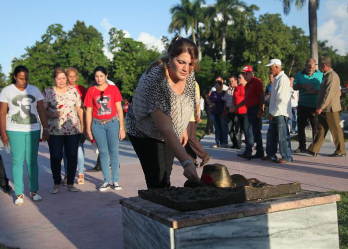Ofrendas florales a nombre del General de Ejército Raúl Castro Ruz, primer secretario del Comité Central del Partido, y del pueblo de Cuba fueron colocadas junto a la estatua del héroe, que condujo la legendaria invasión de la Columna 2, fundó el Frente Norte y desplegó una intensa actividad guerrillera, que terminó derrotando a las fuerzas de la dictadura que defendían la zona.