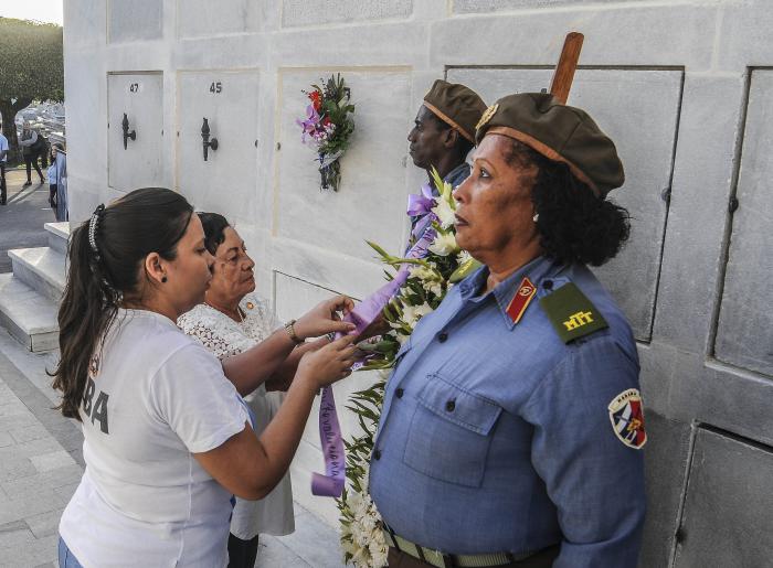 A cuarenta años de su desaparición física, el pueblo de Cuba rindió homenaje este sábado, en la necrópolis de Colón, a la heroína de la sierra y el llano, Celia Sánchez Manduley; una ofrenda floral encabezó el peregrinaje desde la capilla del camposanto hasta el panteón de las Fuerzas Armadas Revolucionarias, hasta donde llegó la precesión para colocarle flores y honrar su memoria.
