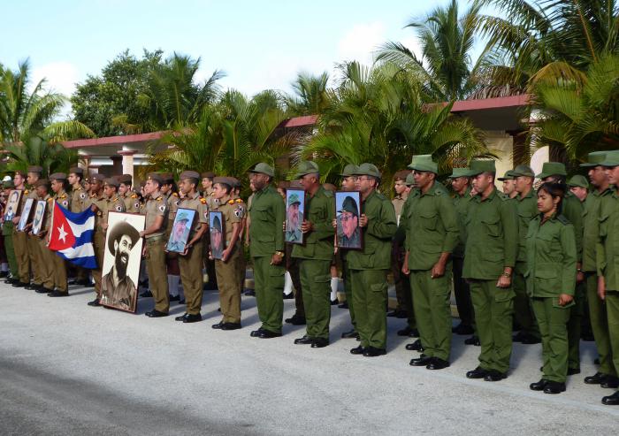 El acto, realizado en áreas del Estado Mayor de la Región Militar, reunió a oficiales, suboficiales, sargentos, soldados, trabajadores civiles de la Defensa y alumnos de la Escuela Militar Camilo Cienfuegos de Holguín, quienes invitaron a pioneros y maestros de escuelas circundantes.